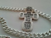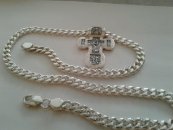 Срібний ланцюг Бісмарк 200 грам з хрестом для чоловіка